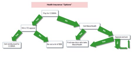 And it works. It works really well. Until a friend asks what my current health status is, and if I think I’ll improve, and what the doctor says, and what I’ll do without health insurance (as of this weekend!!!) and where my LTD appeal stands and and and and and….. It drags me back into the mess that is my life, and it makes me dwell on the lousy parts and re-realize how uncertain the possible improvements really are.